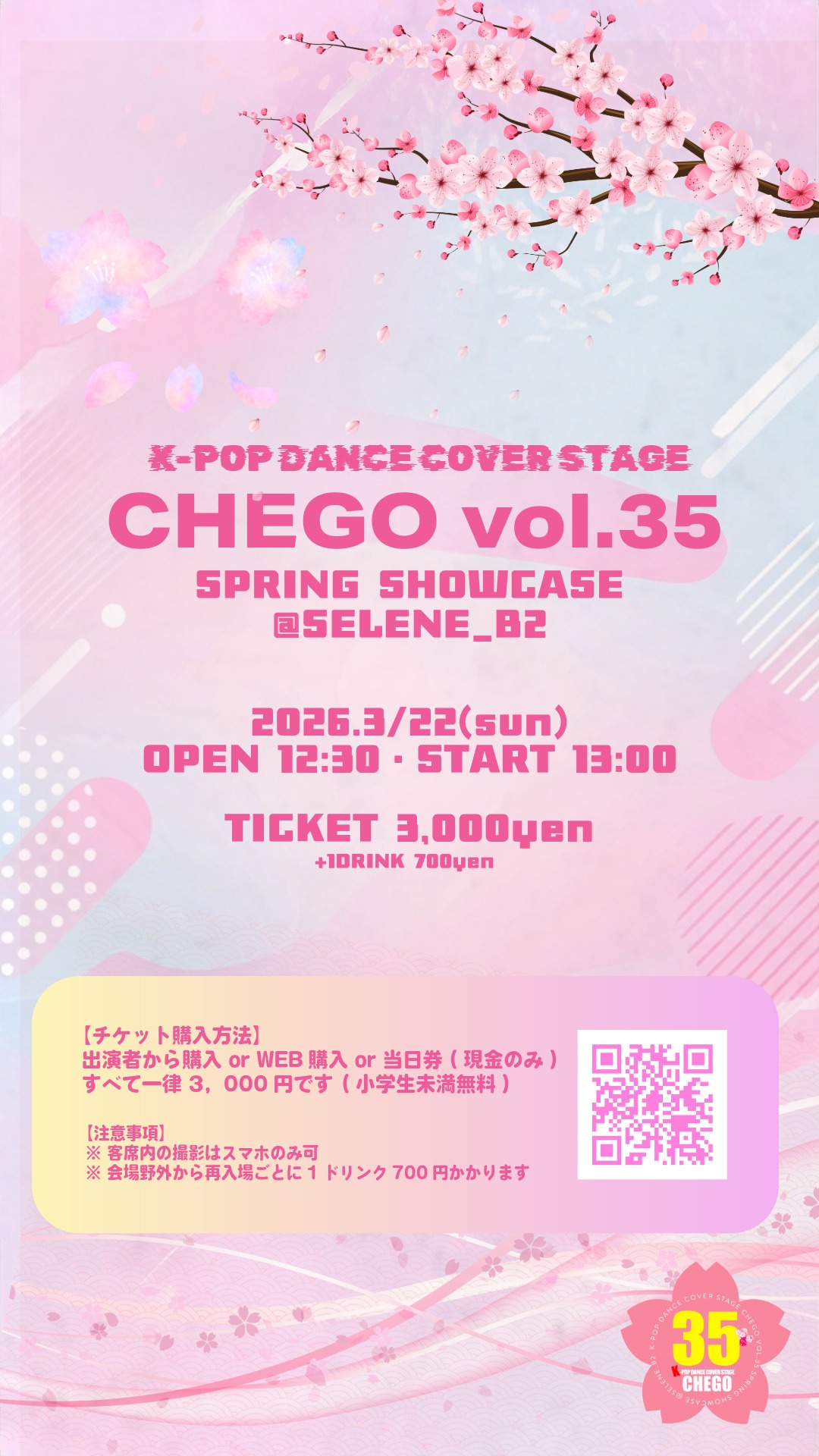 春ちぇご🌸 3/22(日) 白金高輪セレネスタジオにて開催✨動画審査を勝ち抜いた精鋭チームが豪華ショーケースを披露します🔥春の特別ステージとランダムダンスで最高の1日を楽しもう!🌸✨