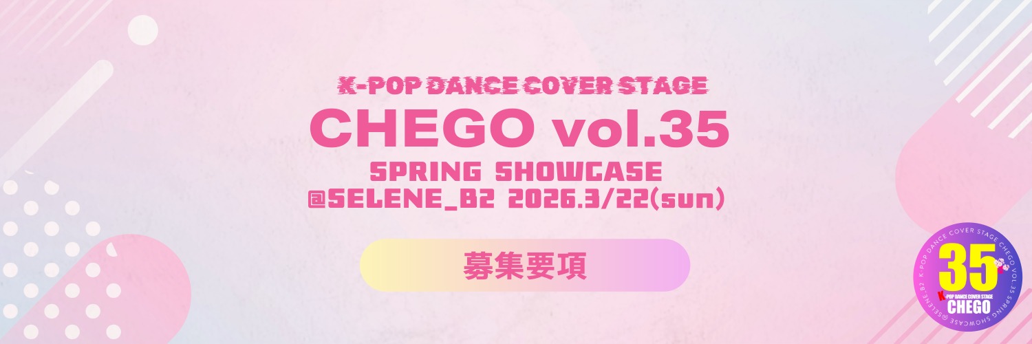 2026年3月22日(日)ちぇご☆vol.35 SPRING SHOWCASE 出演チーム募集中です!通常開催のちぇごです。最新曲から懐メロまでエントリー可能。動画審査で選考し、全60チームほどで調整予定です。